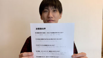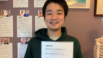 自分の症状に一番合っているんじゃないかなと思い、藁をもすがる思いでお願いしました。病院だと薬で痛みを抑えているだけで根本的な改善には至らなかったので、痛みの原因を突き止めて根本改善を目指してくれます。
